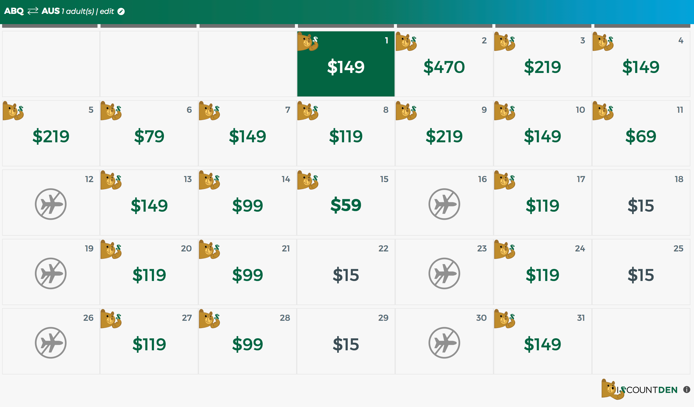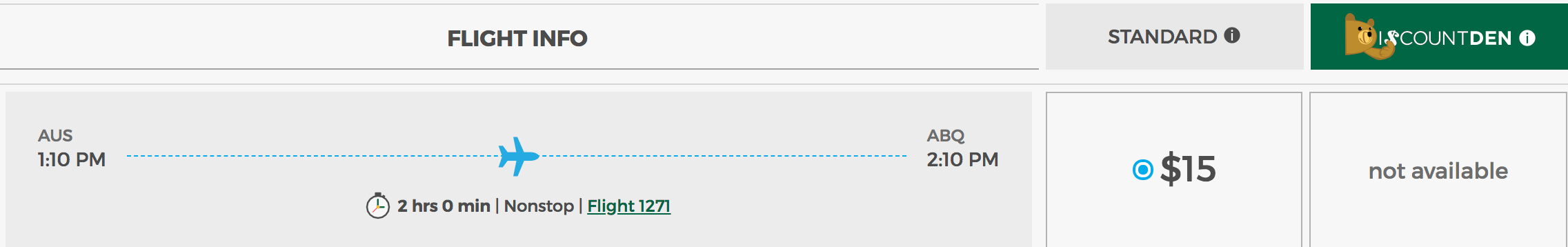 Austin (AUS) to Albuquerque (ABQ) for $15 one-way: