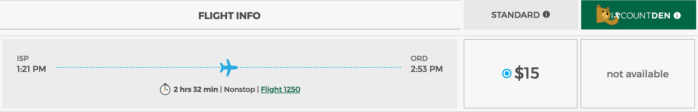 Long Island Islip (ISP) to Chicago (ORD) for $15 one-way: