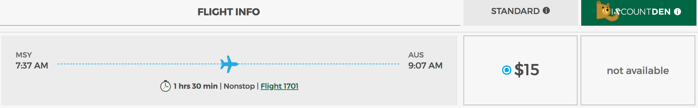 New Orleans (MSY) to Austin (AUS) for $15 one-way: