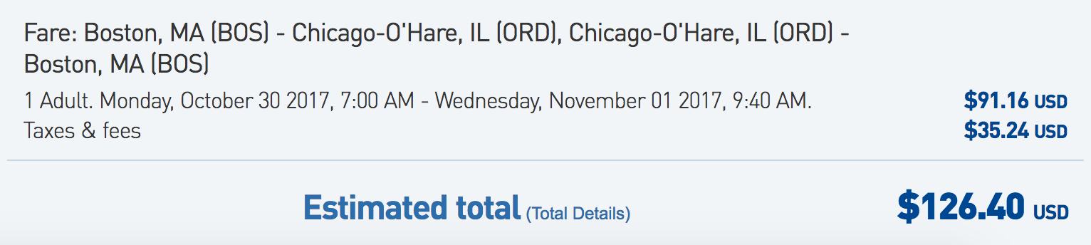 Boston (BOS) to Chicago (ORD) for $126 round-trip in November: