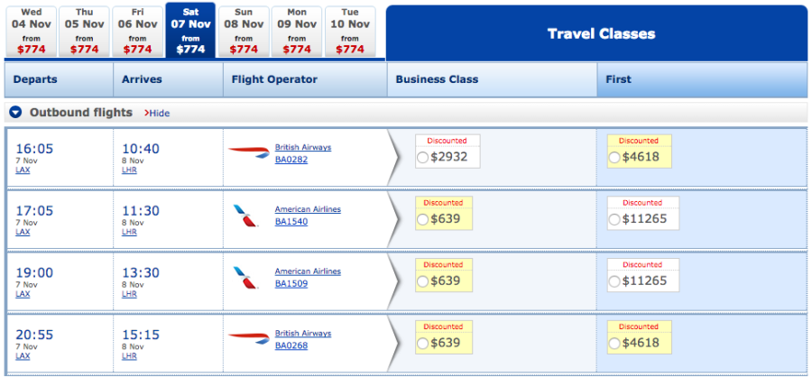 Step 3: Select your flights and click Continue to price. Remember: Only British Airways is eligible for the extra 10% off.
