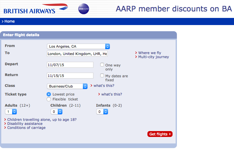Step 1: Head to AARP’s British Airways discount page to save $400 off this flight (per person). You do need to be an AARP member, but anyone can join for $16 per year (as low as $12.60 per year if you pay $63 for a five-year membership). Log in to verify your membership and click through to British Airways.