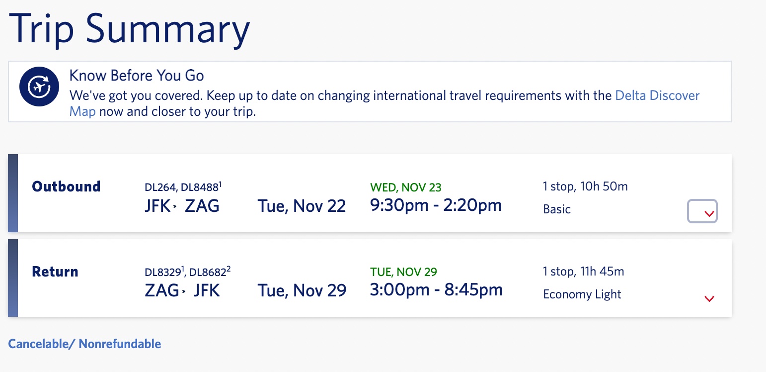However, the flight with one of the shortest layovers was a Nov. 23 Delta flight from JFK to Zagreb priced at $541 on Delta's website as of Aug. 11.