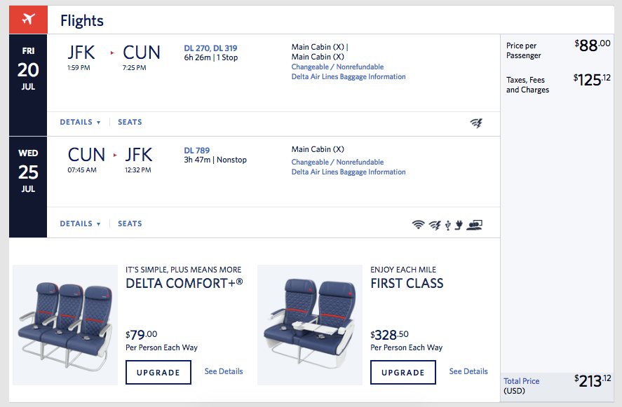 New York (JFK) to Cancun (CUN) in July for $214 round-trip on Delta in regular economy: