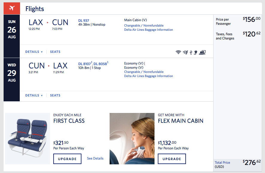 Los Angeles (LAX) to Cancun (CUN) in August for $277 round-trip on Delta in regular economy: