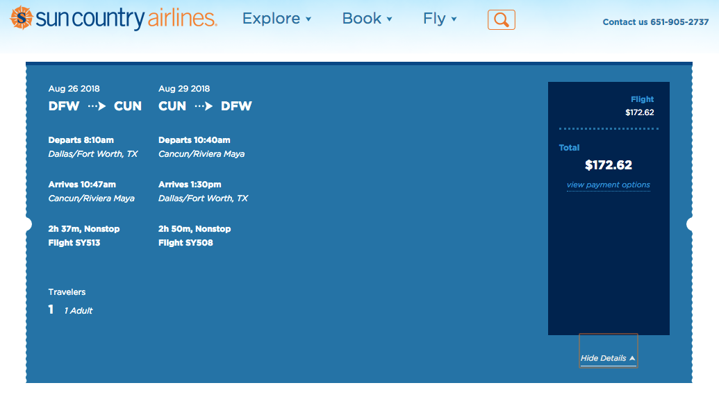 Dallas (DFW) to Cancun (CUN) in August for $173 round-trip on Sun Country Airlines: