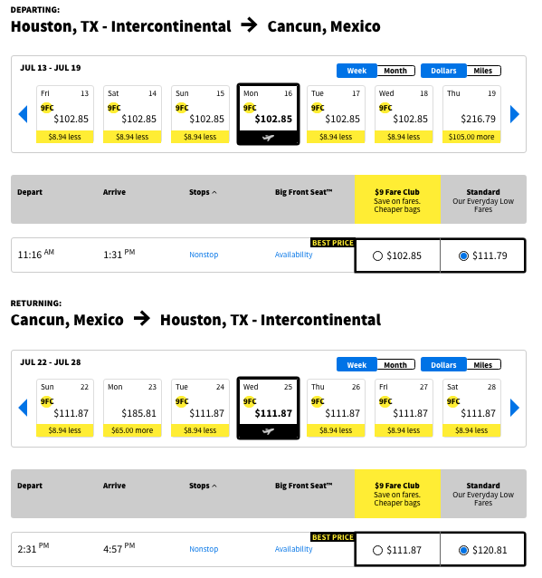 Houston (IAH) to Cancun (CUN) in July for $233 nonstop round-trip on Spirit (additional discounts for members of the $9 Fare Club):