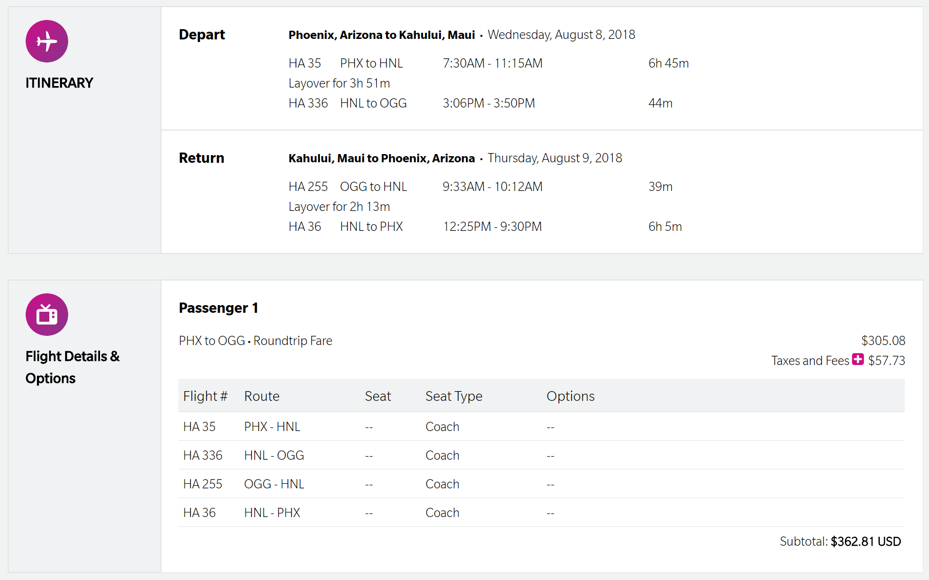 Phoenix (PHX) to Kahului, Maui (OGG) on Hawaiian for $363 round-trip: