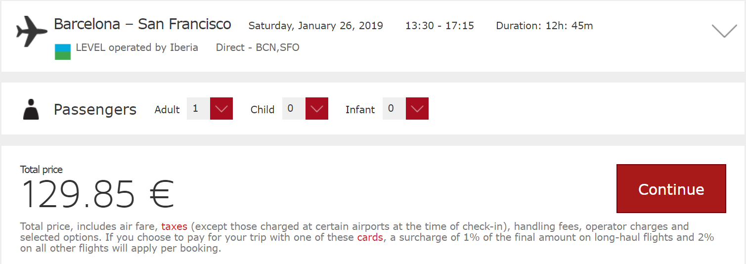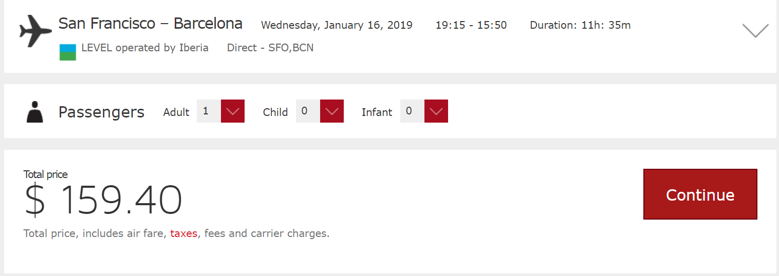 San Francisco (SFO) to Barcelona (BCN) for $309 round-trip nonstop on LEVEL ($159 outbound + $150 return):