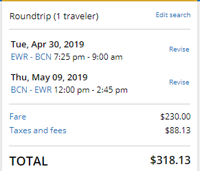 Newark (EWR) to Barcelona (BCN) for $318 round-trip nonstop on United: