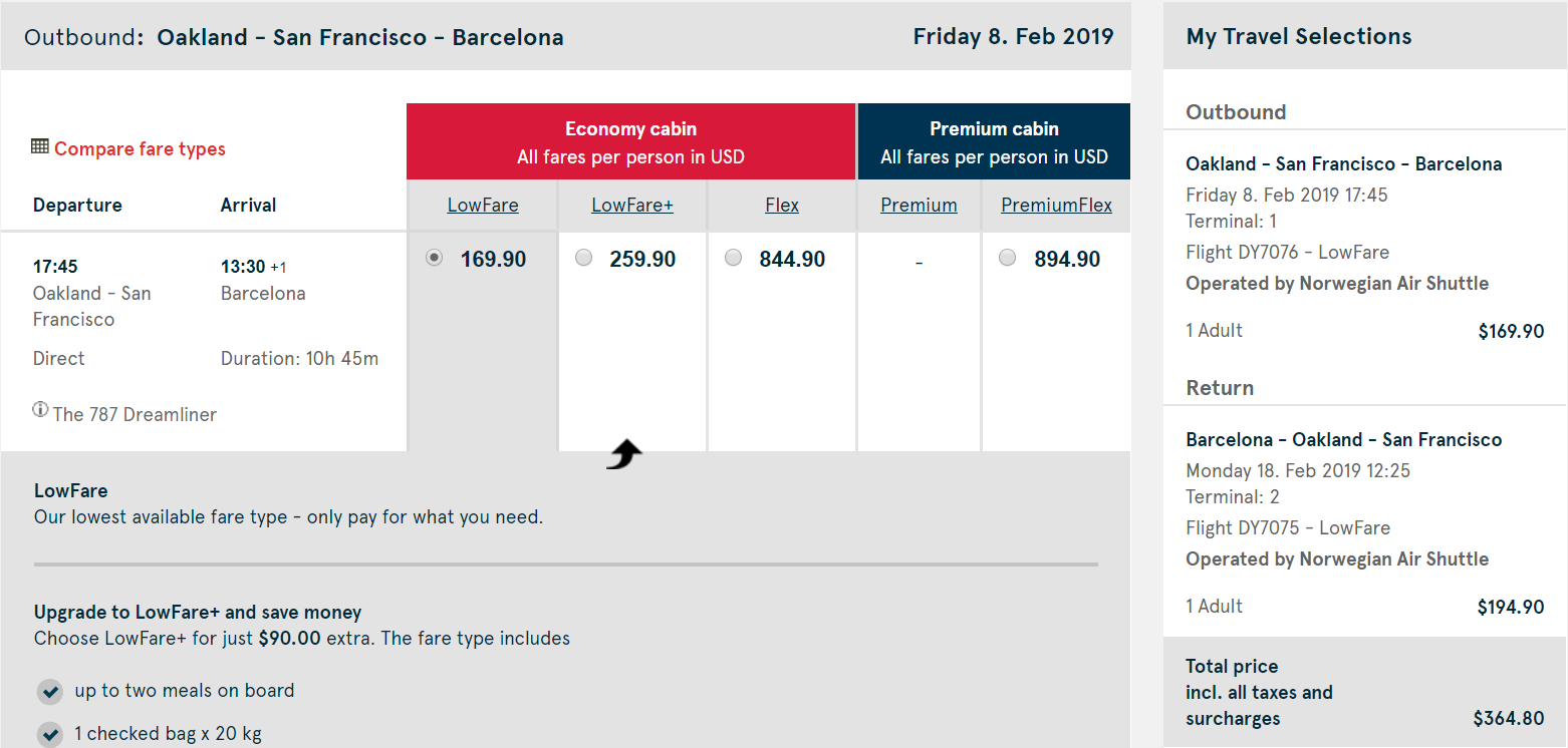 Oakland (OAK) to Barcelona (BCN) for $365 round-trip nonstop on Norwegian: