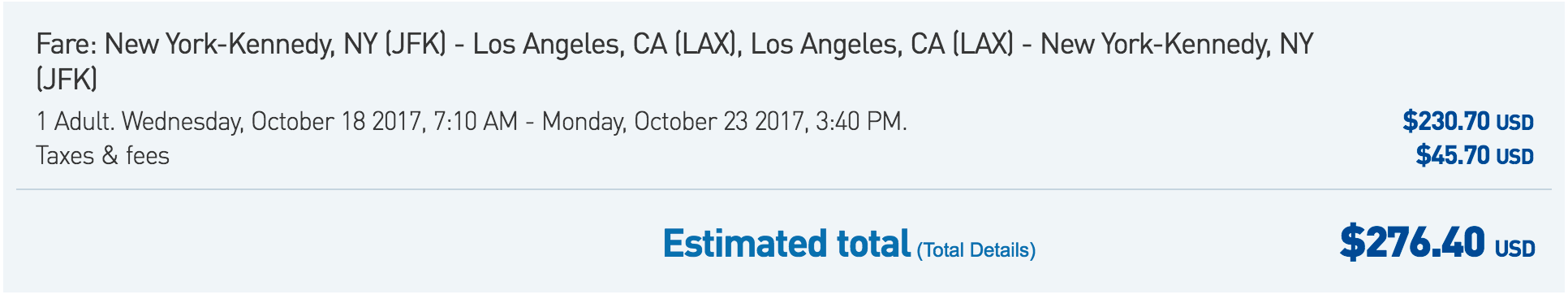 New York (JFK) to Los Angeles (LAX) for $276 round-trip on JetBlue:
