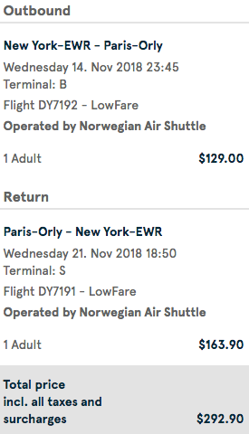 Newark (EWR) to Paris (ORY) nonstop for $293 round-trip on Norwegian: