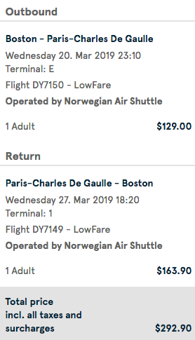 Boston (BOS) to Paris (CDG) nonstop for $293 round-trip on Norwegian: