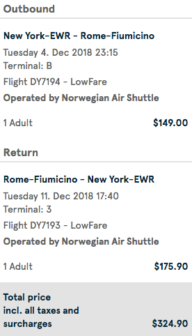 Newark (EWR) to Rome (FCO) nonstop for $325 round-trip on Norwegian: