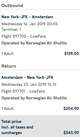 New York (JFK) to Amsterdam (AMS) nonstop for $344 round-trip on Norwegian: