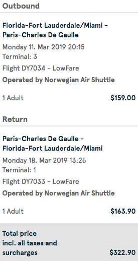 Fort Lauderdale (FLL) to Paris (CDG) nonstop for $323 round-trip on Norwegian: