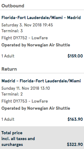 Fort Lauderdale (FLL) to Madrid (MAD) nonstop for $323 round-trip on Norwegian: