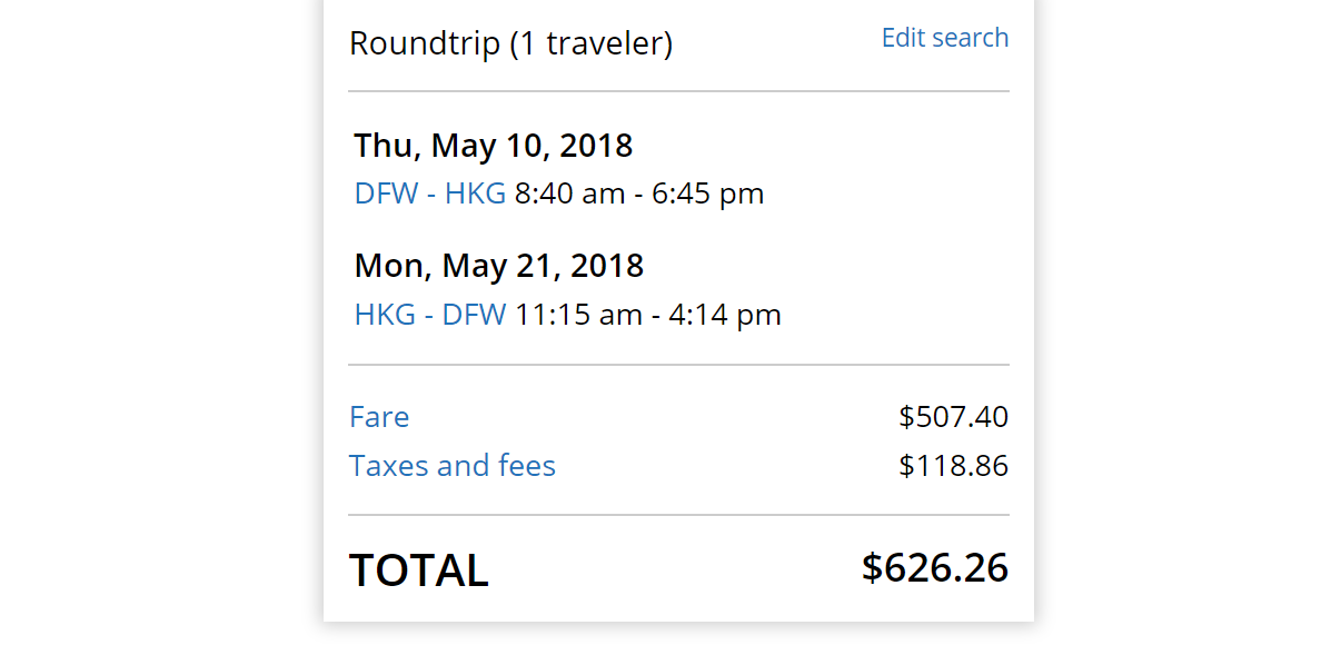 Dallas/Fort Worth (DFW) to Hong Kong (HKG) for $626 round-trip on United: