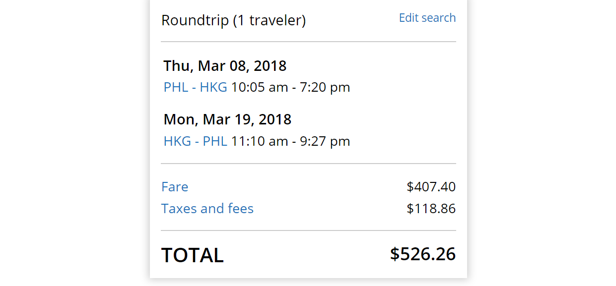 Philadelphia (PHL) to Hong Kong (HKG) for $526 round-trip on United by plane only: