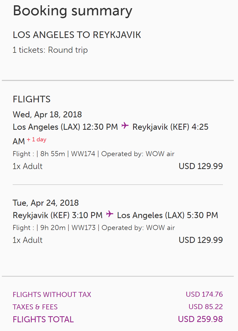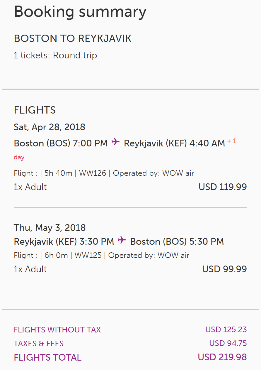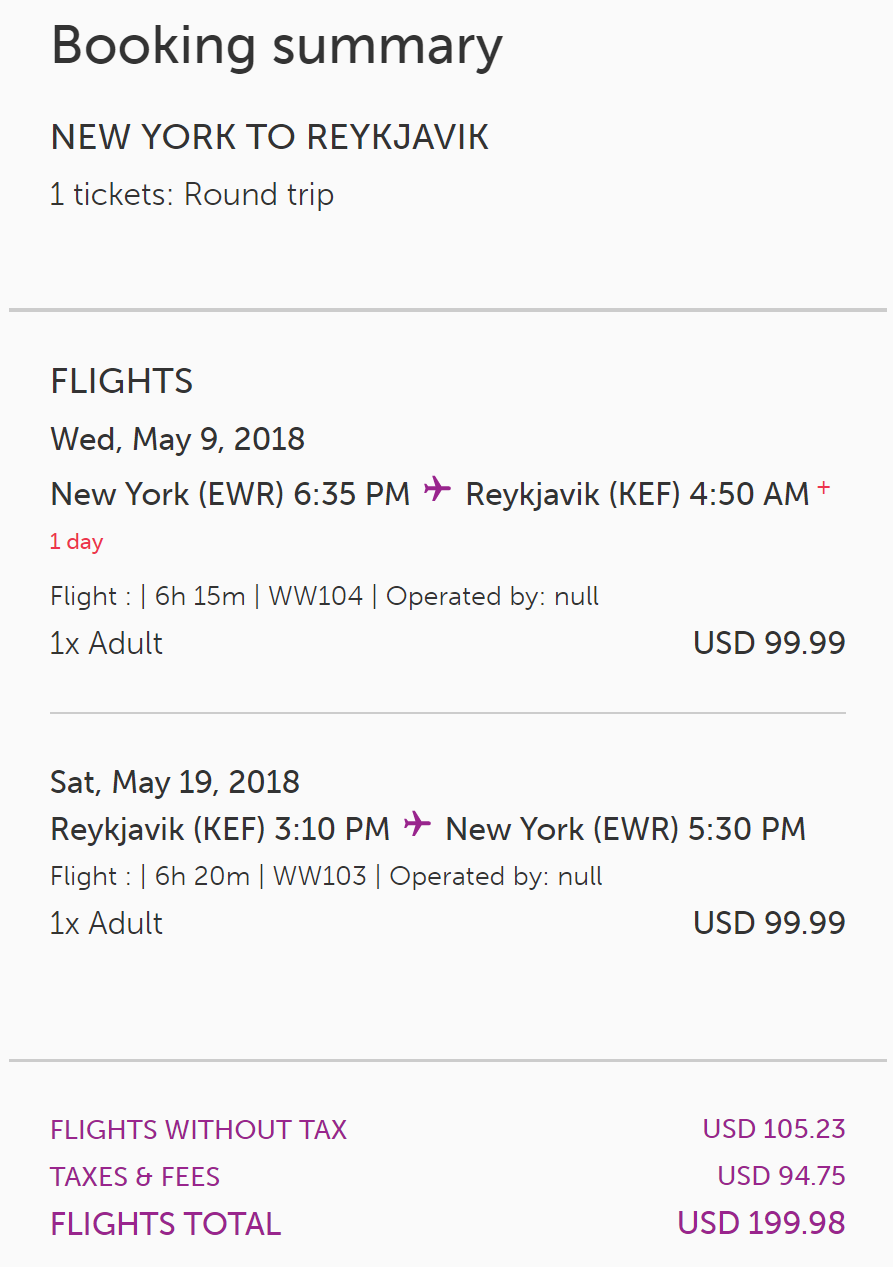 WOW is a budget airline so if you want to check a bag or choose your seat, you'll have to pay extra for it. Exact availability depends on where you're originating from, but we're seeing low fares for departures from March to June 2018. Use Google Flights to find the dates you want, then book directly with the airline.