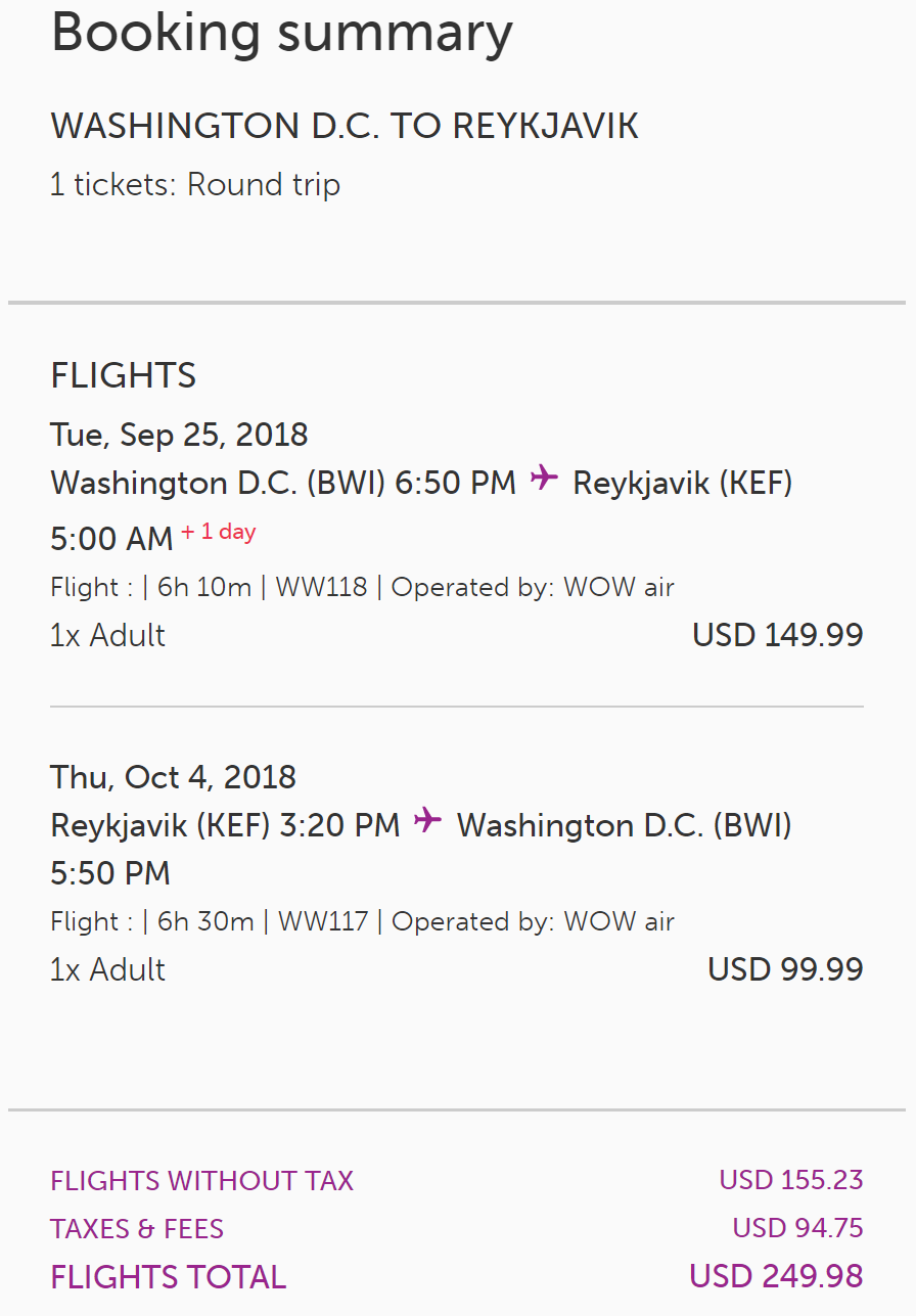 Baltimore (BWI) to Reykjavik (KEF) for $250 round-trip: