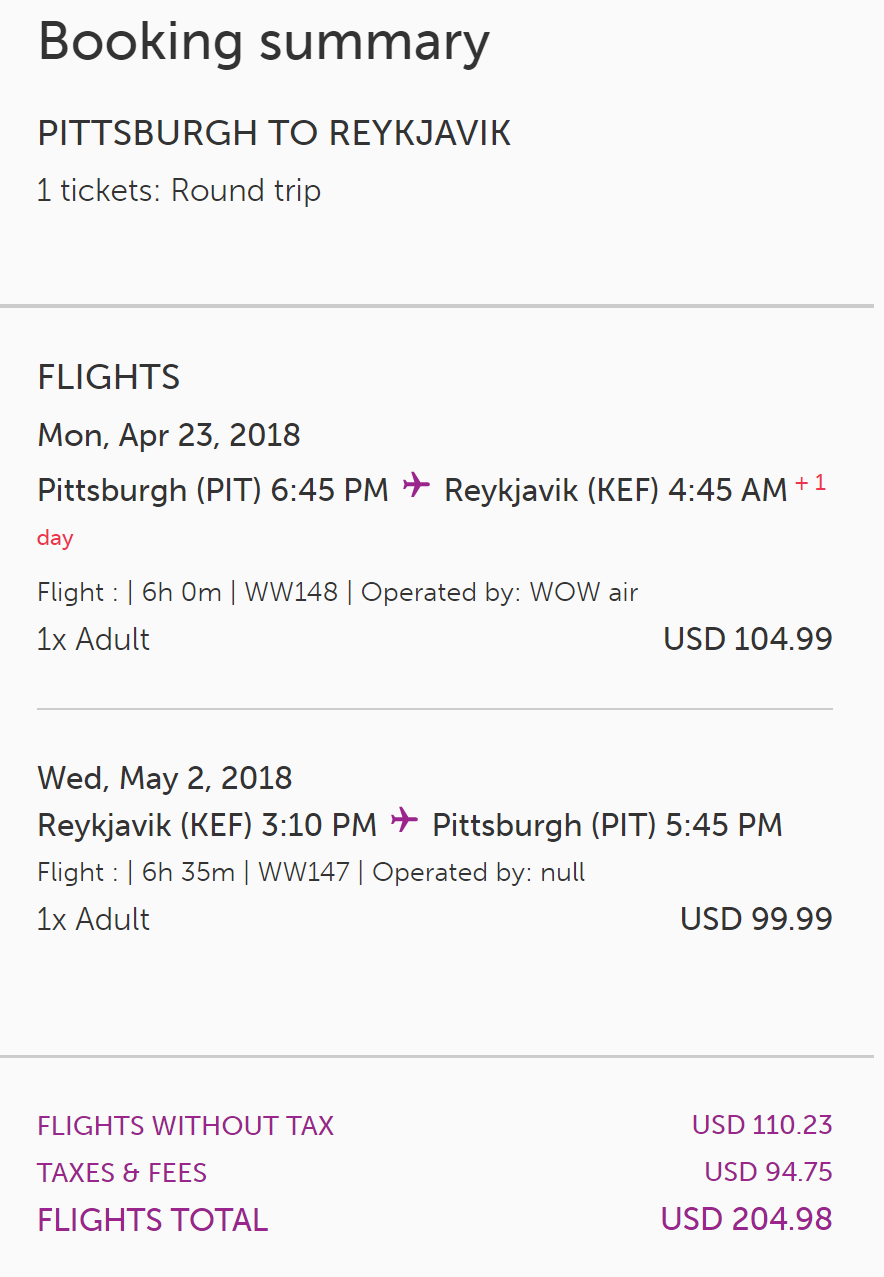 Pittsburgh (PIT) to Reykjavik (KEF) for $205 round-trip: