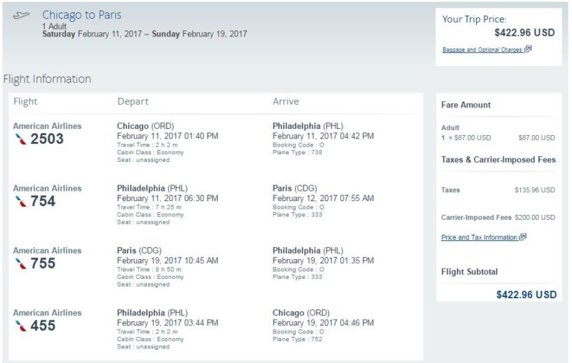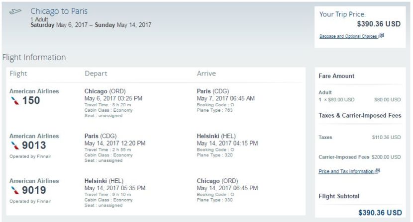 Chicago (ORD) to Paris (CDG) for $390 round-trip in May: