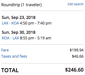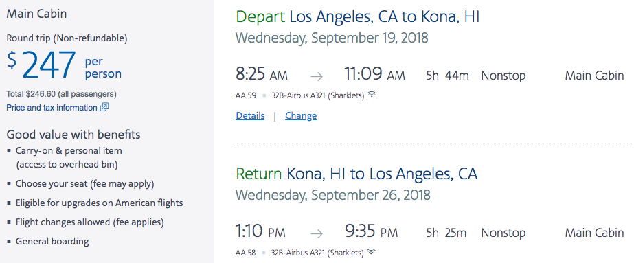 Los Angeles (LAX) to Kona (KOA) for $247 round-trip nonstop in September on American Airlines: