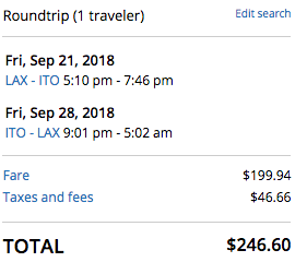 Los Angeles (LAX) to Hilo (ITO) for $247 round-trip nonstop in September on United: