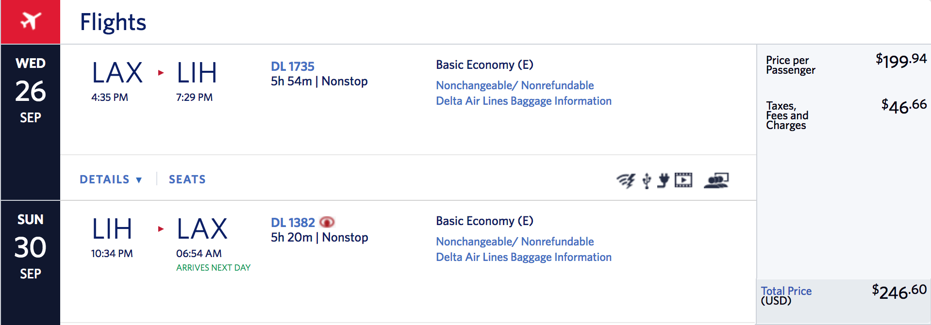 Seattle (SEA) to Kauai (LIH) for $247 round-trip nonstop in Delta Basic Economy: