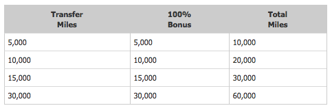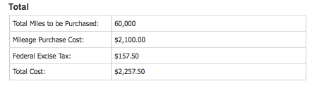 So if you purchase 60,000 miles at $2,257.50, you'll get a bonus of 45,000, so 105,000 total at 2.15 cents apiece. Better than normal, but still not a great deal - especially since you can create miles for half the price using the transfer method.