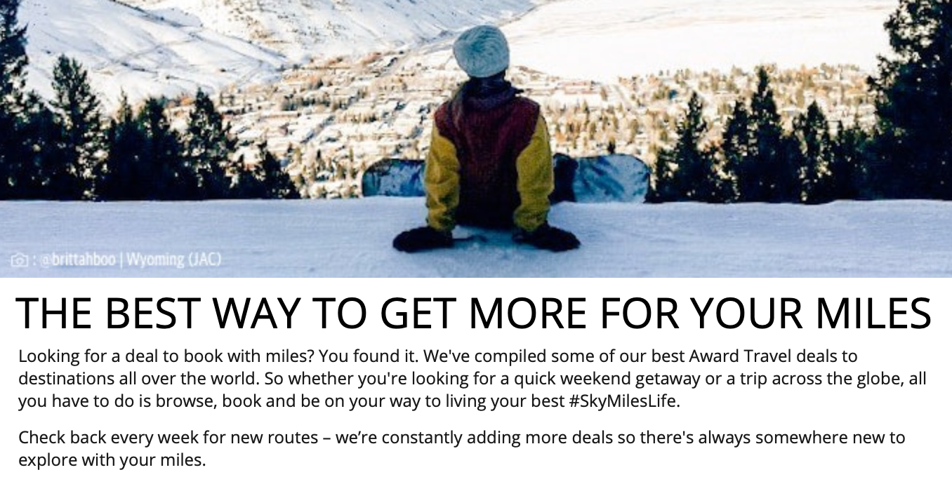 To search, plug in your origin airport at Delta.com along with one of the sale destinations mentioned below. We recommend using Delta's "Flexible Dates" calendar, and making sure to check "shop with miles" when looking at search results.