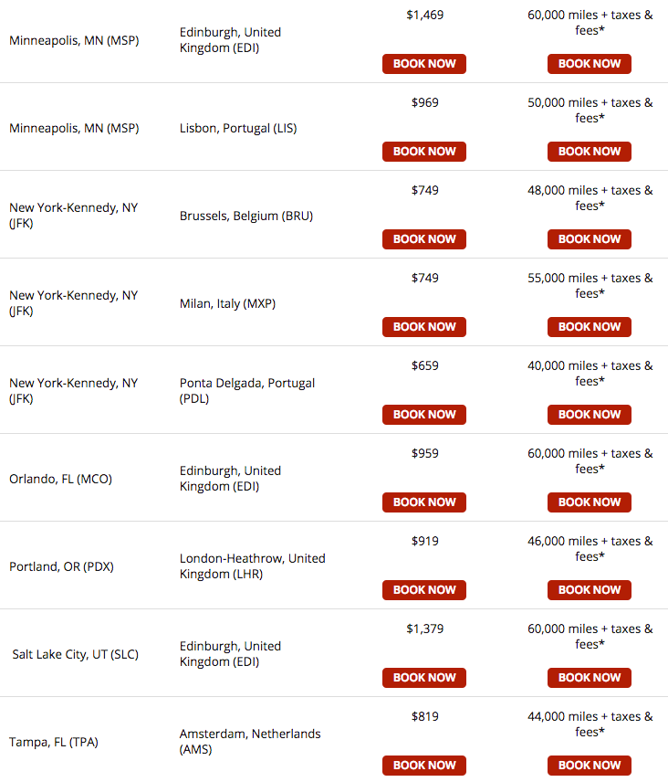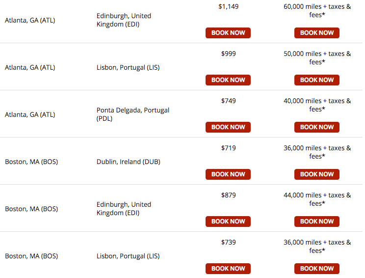 Fares begin at $659 (or 36,000 SkyMiles) round-trip in Main Cabin, and include hot spots like the Azores (PDL), Lisbon (LIS), Edinburgh (EDI), Rome (FCO) and Sydney (SYD).