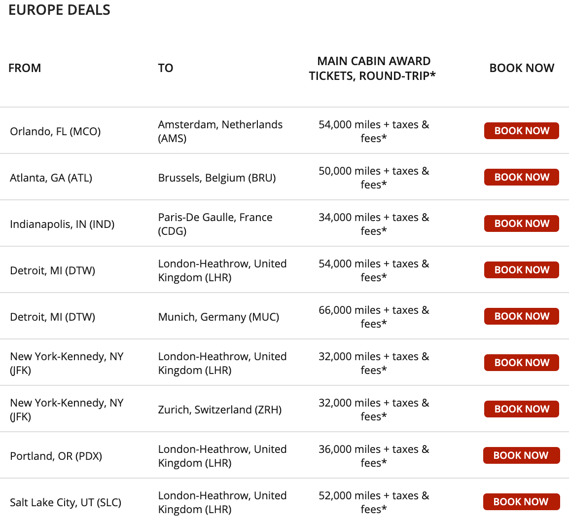 Cost: 32,000+ SkyMiles and ~$60 round-trip in economy (taxes and exact award costs vary by route)