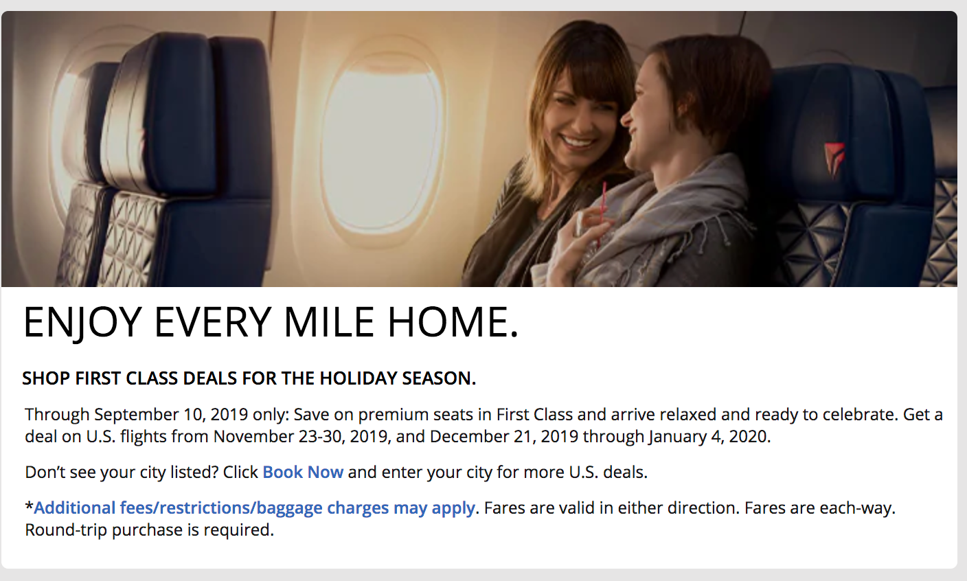 Last week, we wrote about a surprise flash sale from Delta offering one-way first class tickets starting at just $172. Now the airline is back with even more flash sales, this time around the holidays. Delta says that prices start at $199, but we're spotting deals from just $146 one-way.