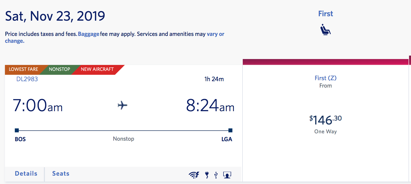 Boston (BOS) to New York (LGA) for $146 one-way: