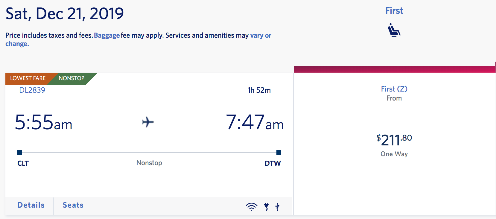 Charlotte (CLT) to Detroit (DTW) for $211 one-way: