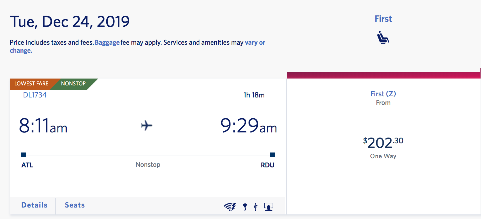 Atlanta (ATL) to Raleigh (RDU) for $202 one-way: