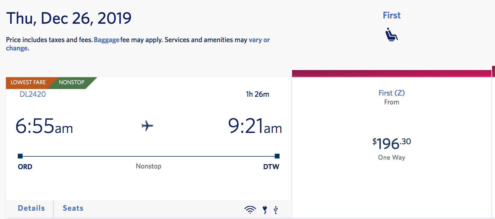 Chicago (ORD) to Detroit (DTW) for $196 one-way:
