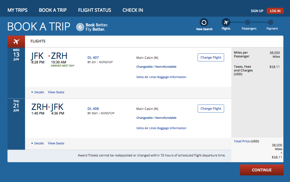 It's rare enough to see Delta's dynamic award redemption rates drop this low for a transatlantic trip. But a full-fare economy deal direct from New York to Europe — over peak summer travel times, no less — is incredible! So gather your SkyMiles and get yourself over to Zurich for just $59 in taxes. Availability for the 38,000 round-trip rates seem to be limited to mid-June. However, the next tier up costs just 48,000 SkyMiles round-trip, with a good amount of dates from June through next March, including holiday dates over Thanksgiving and Christmas.
