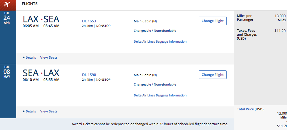 To search, head to Delta.com and enter you ideal departure city and either Seattle and Portland as your destination. Make sure you select 'miles' and 'flexible dates' to help find the lowest possible price for you travel.