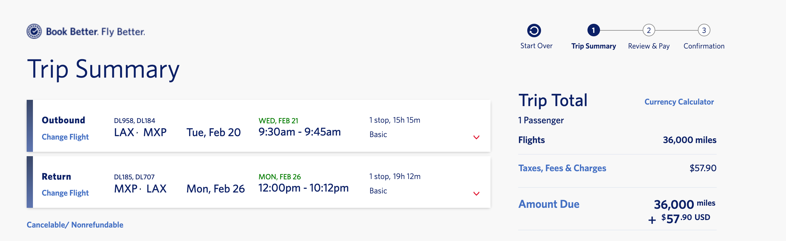 Keep in mind, if you carry one of Delta's cobranded American Express credit cards, you can also take advantage of the TakeOff 15 discount, which could lead to some sizable savings — a round-trip fare for 70,000 miles suddenly costs just 59,500 miles with the 15% discount.