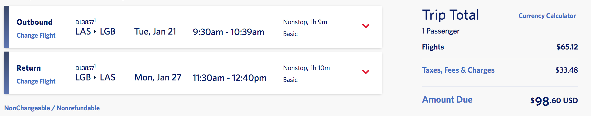 Las Vegas (LAS) to Long Beach (LGB) for $99 round-trip in basic economy: