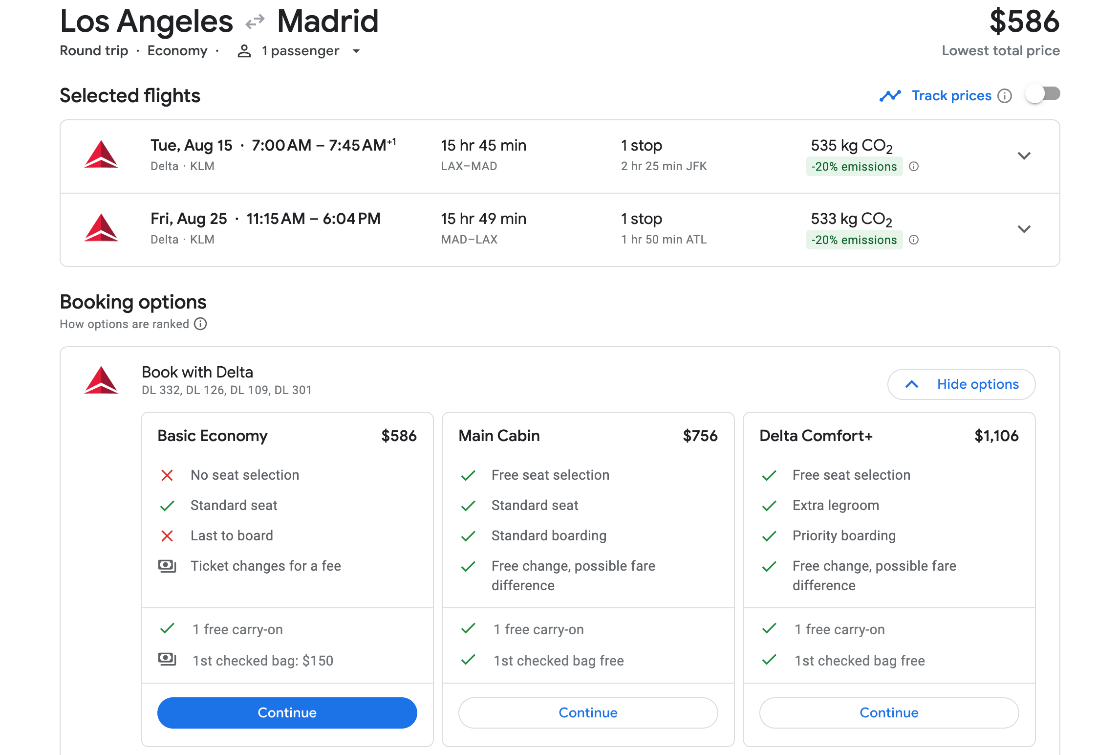 - Los Angeles International Airport (LAX) to MAD, starting at $586