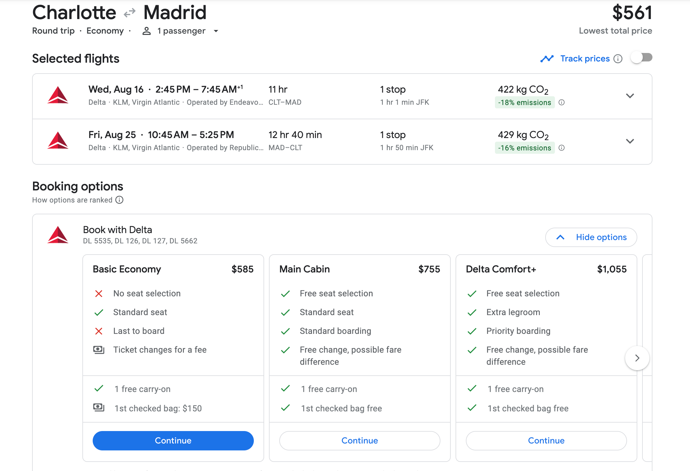 - Charlotte Douglas International Airport (CLT) to Adolfo Suárez Madrid-Barajas Airport (MAD), starting at $585