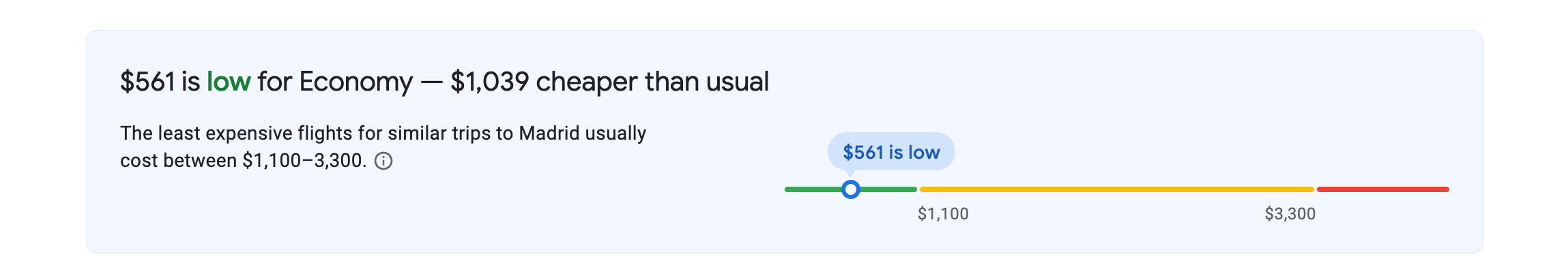 For just $25 more, travelers can fly all the way from Los Angeles to Madrid. If you're flying from the U.S. West Coast, it'll take almost a full day to get to and from Europe. So, it's a good idea to book a long trip like this one to make the flight worth it. With the flight above, you'll get to spend nine full days in the Spanish capital.