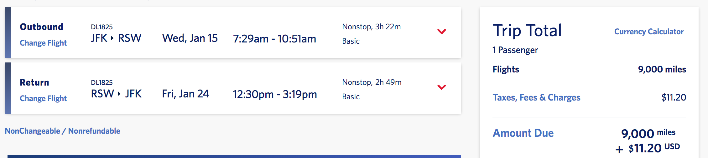 New York (JFK) to Ft. Myers (RSW) for 9,000 SkyMiles + SkyMiles + $11.20 round-trip nonstop in basic economy (also works from LGA):