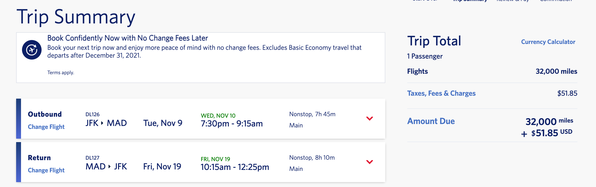 Since you're booking with SkyMiles, you can easily change or cancel your itinerary if you're not able to embark on your trip for unforeseen circumstances.