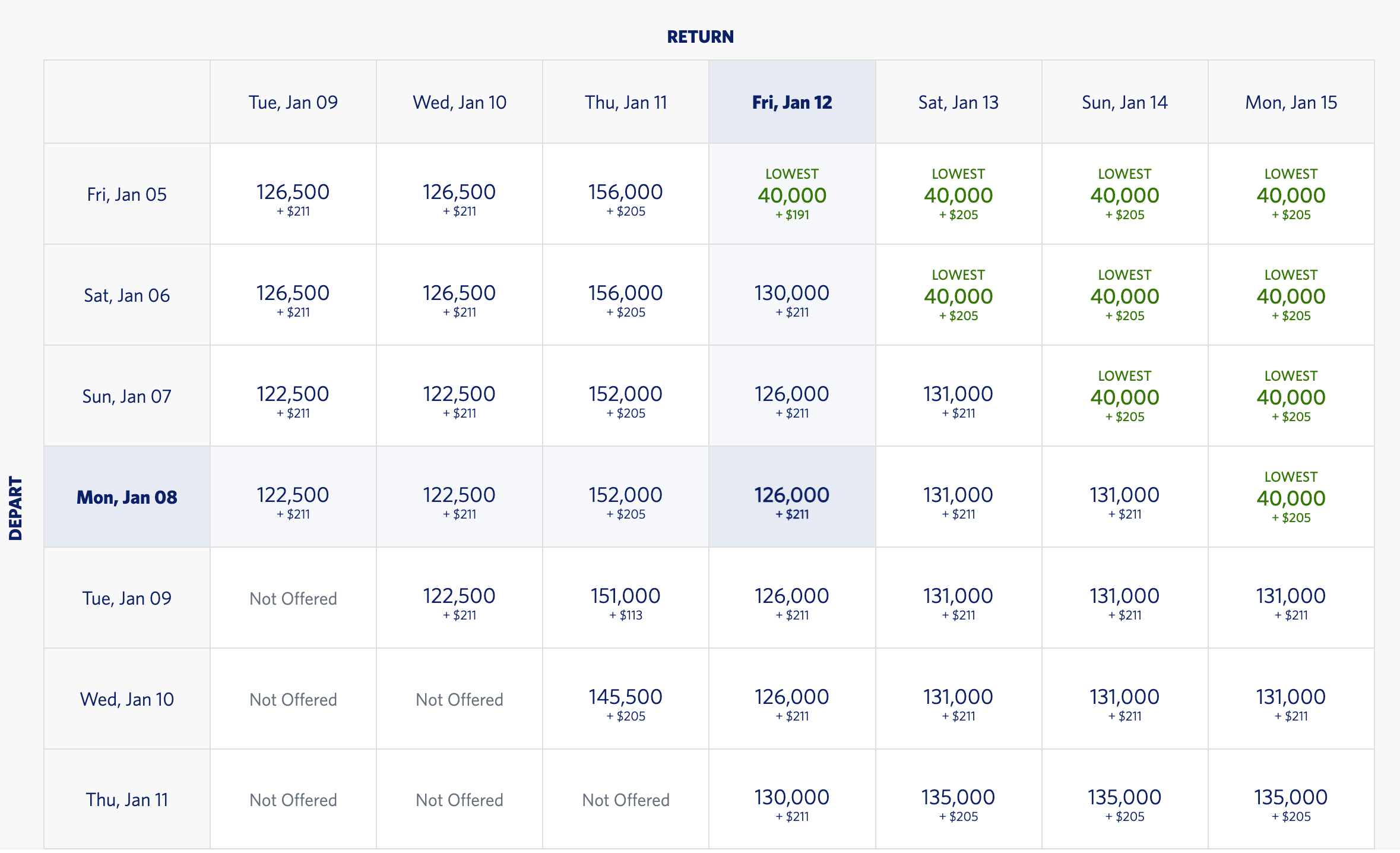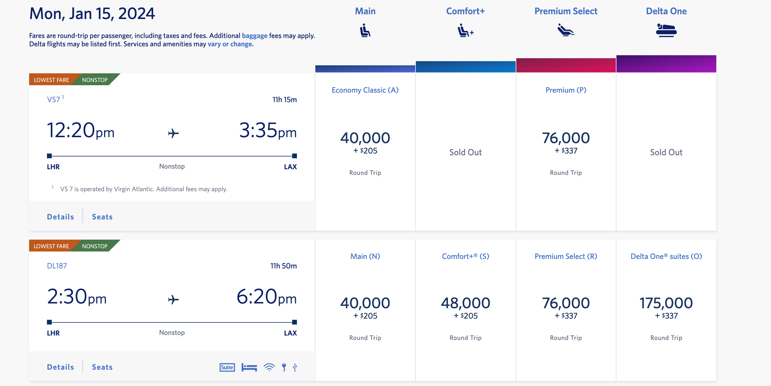 For example, if you're flying from Los Angeles International Airport (LAX) to Heathrow Airport (LHR), Delta's flexible-fare calendar has some availability left at 40,000 miles round-trip.
